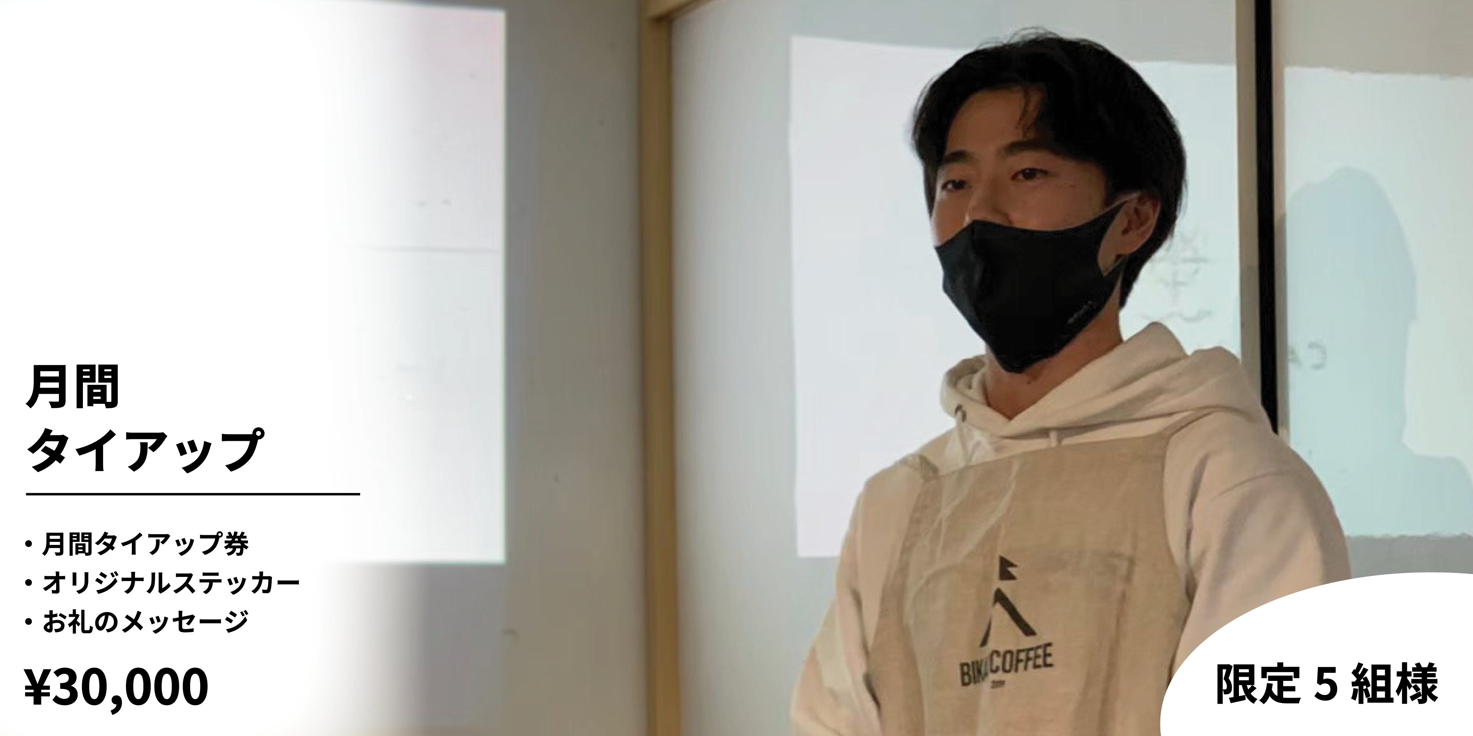 店舗に足を運ぶことが難しい地方の方にオススメの応援パックです。カフェ開業でさらにパワーアップしたコーヒー豆を毎月お届けいたします。こちらのサブスクリプションをご利用の方には店舗完成時のお礼のメッセージに加えて店舗限定パッケージで包装したコーヒー豆をお送りいたします。