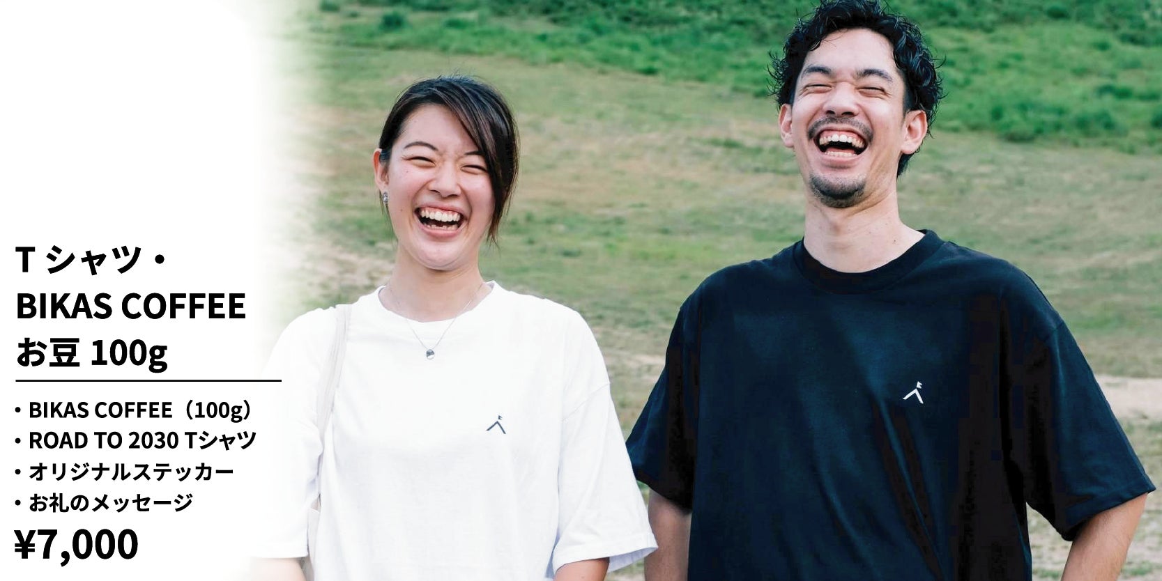 ここでしか手に入らないROAD TO 2030 Tシャツと来店時のご持参でドリンクが50円引きになるタンブラー、ドリンクチケットの欲張りセットです!思う存分に日常でBIKAS COFFEEをお楽しみください。