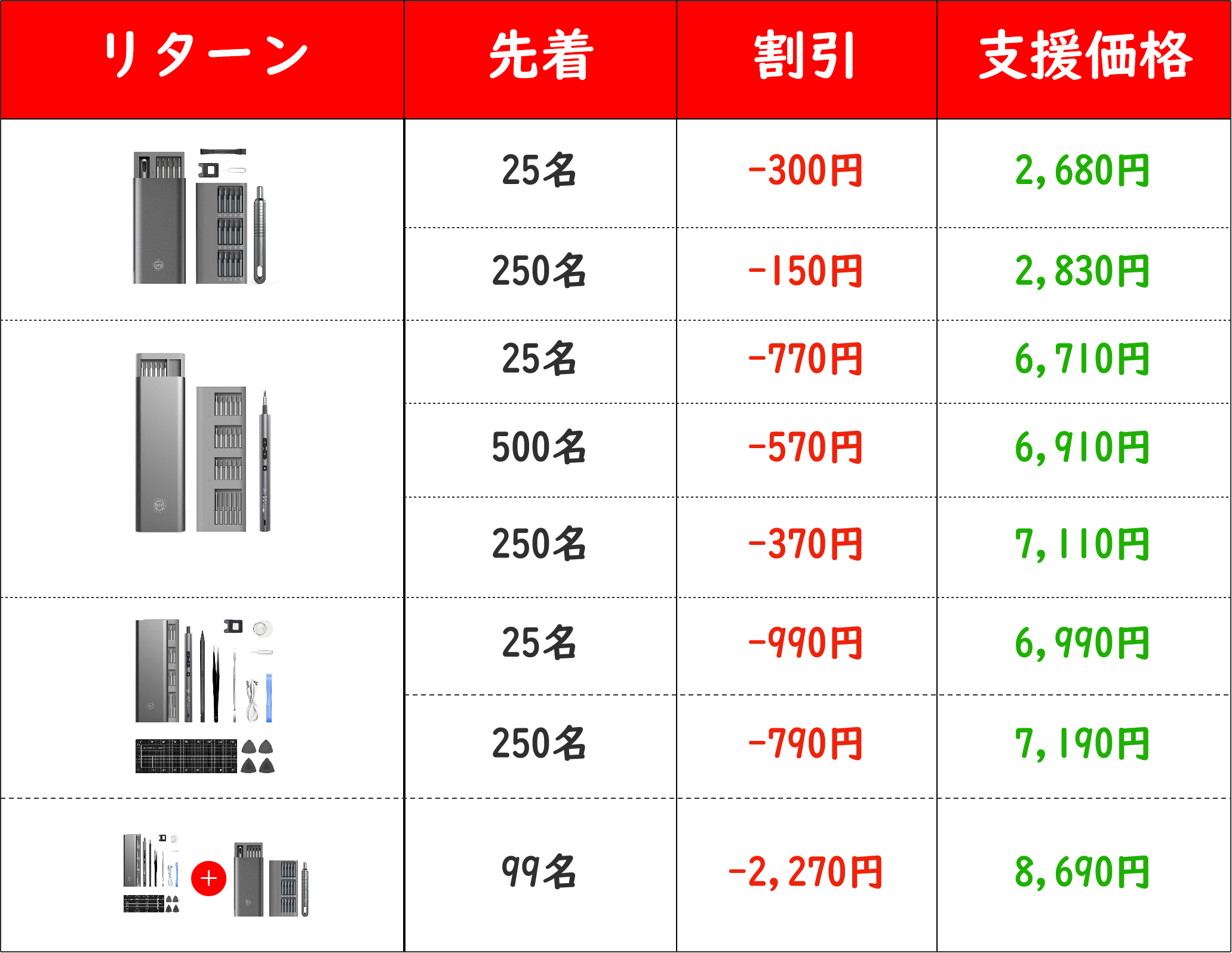 リターン価格:各リターン記載の通り