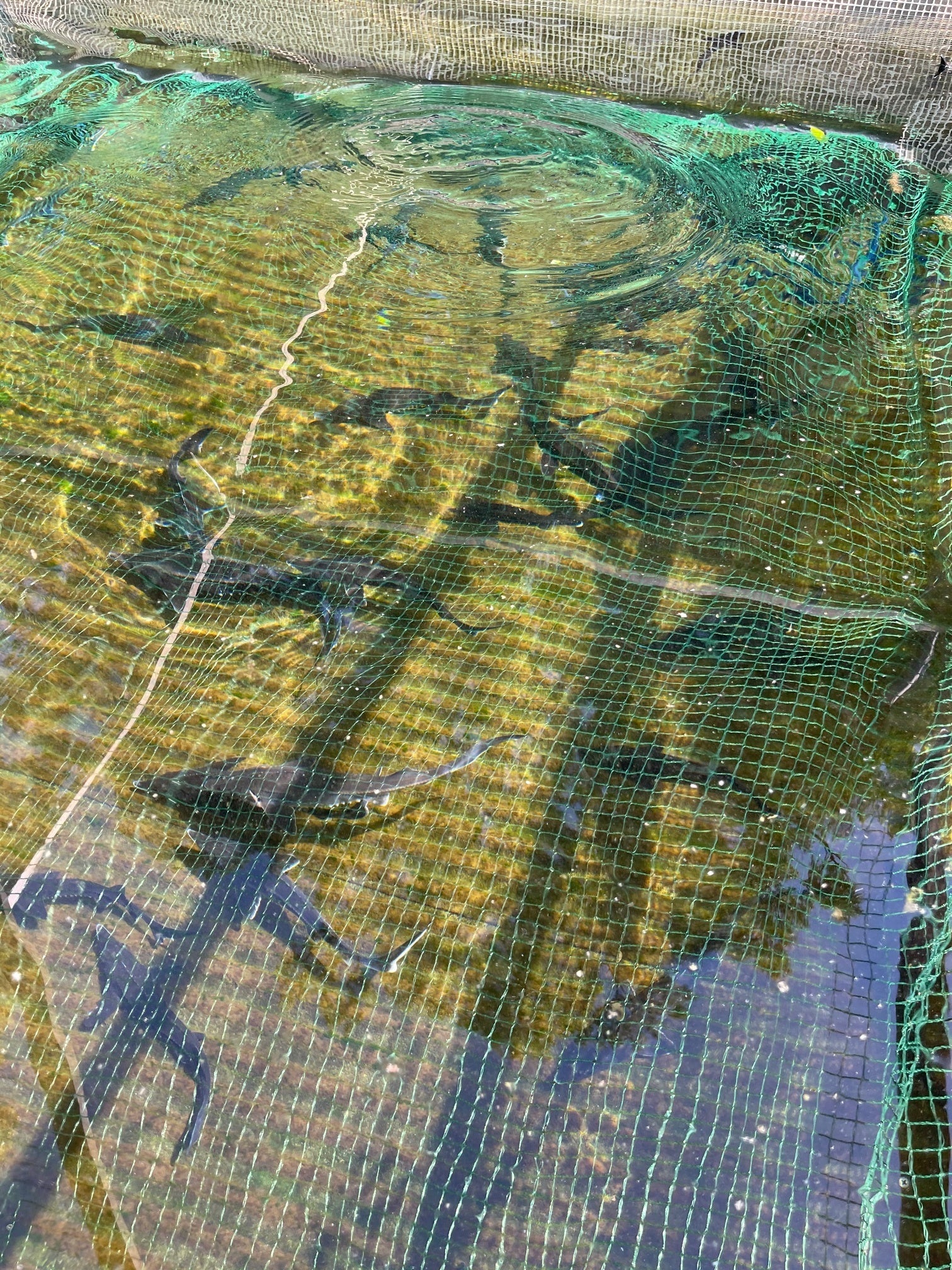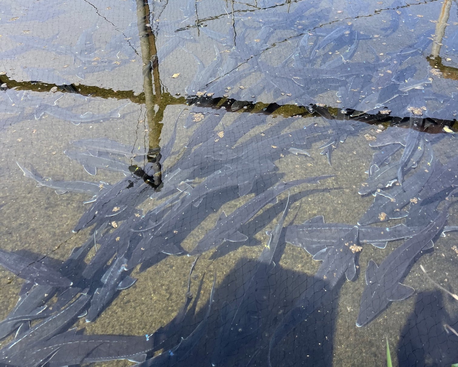 チョウザメの養殖場にいるチョウザメから1尾お好きなチョウザメをお選びいただけます。