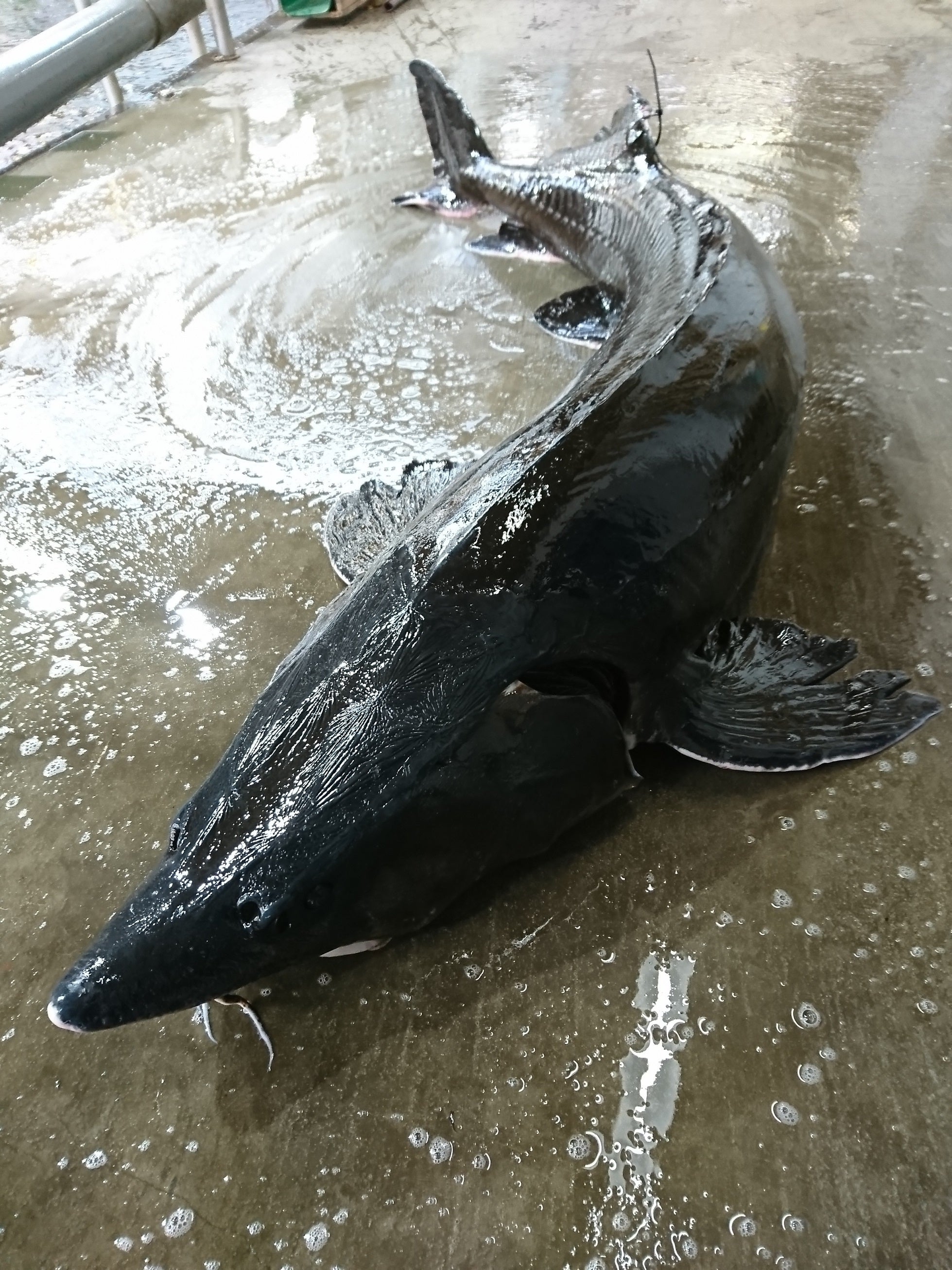 約7キロ〜10キロのメスのチョウザメを1尾(約10%〜15%卵入り)