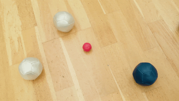 ペタンク、ボッチャのルールで遊んだり、カーリング、ボウリングのように固定した的に目がけて投げたり、転がしたり様々な遊び方ができます!