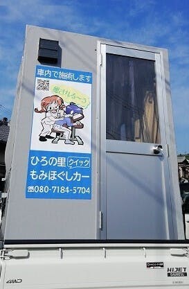 4. この「もみほぐしカー」でお客様のご自宅前・職場前・イベント会場等までお伺いします。
