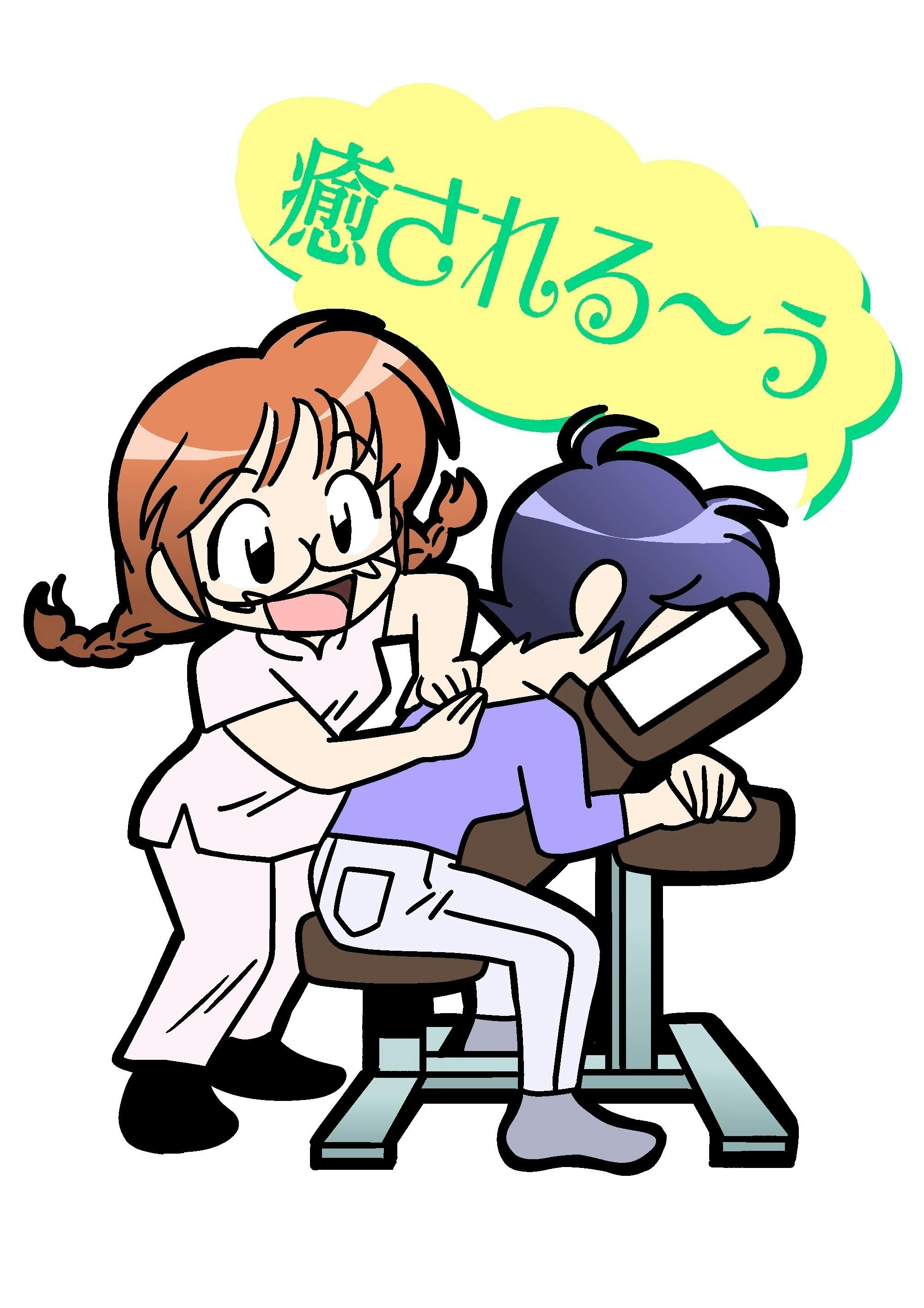 柔道整復師の山下、整体師の石場のいずれかが「もみほぐし」をおこないます。
