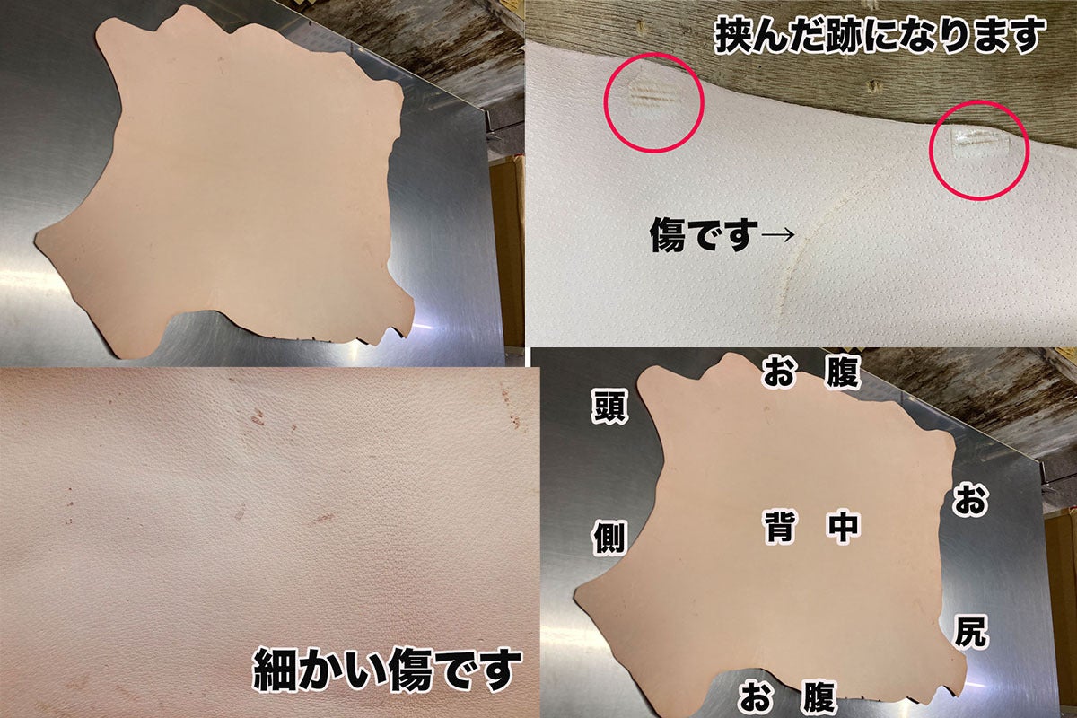 ※本来のヌメ革を感じていただくために、傷や穴はそのままです。ご了承ください。