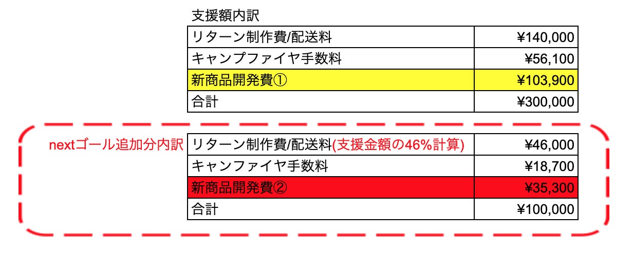 nextゴール分も合わせた支援金の全額を新商品の開発費用に使わせていただきます。