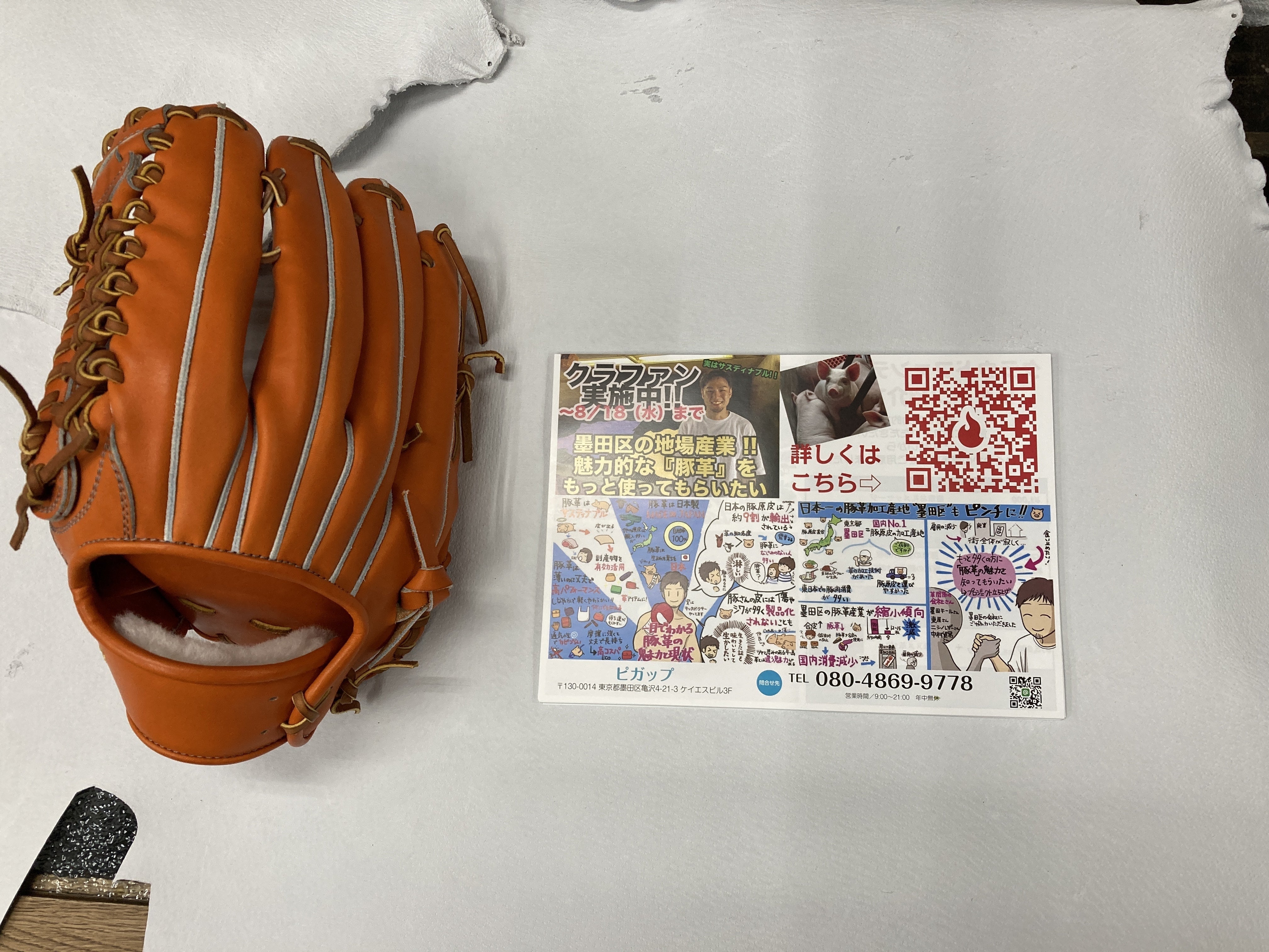 現在開発中の「豚革野球グローブ」の製作をお願いしている