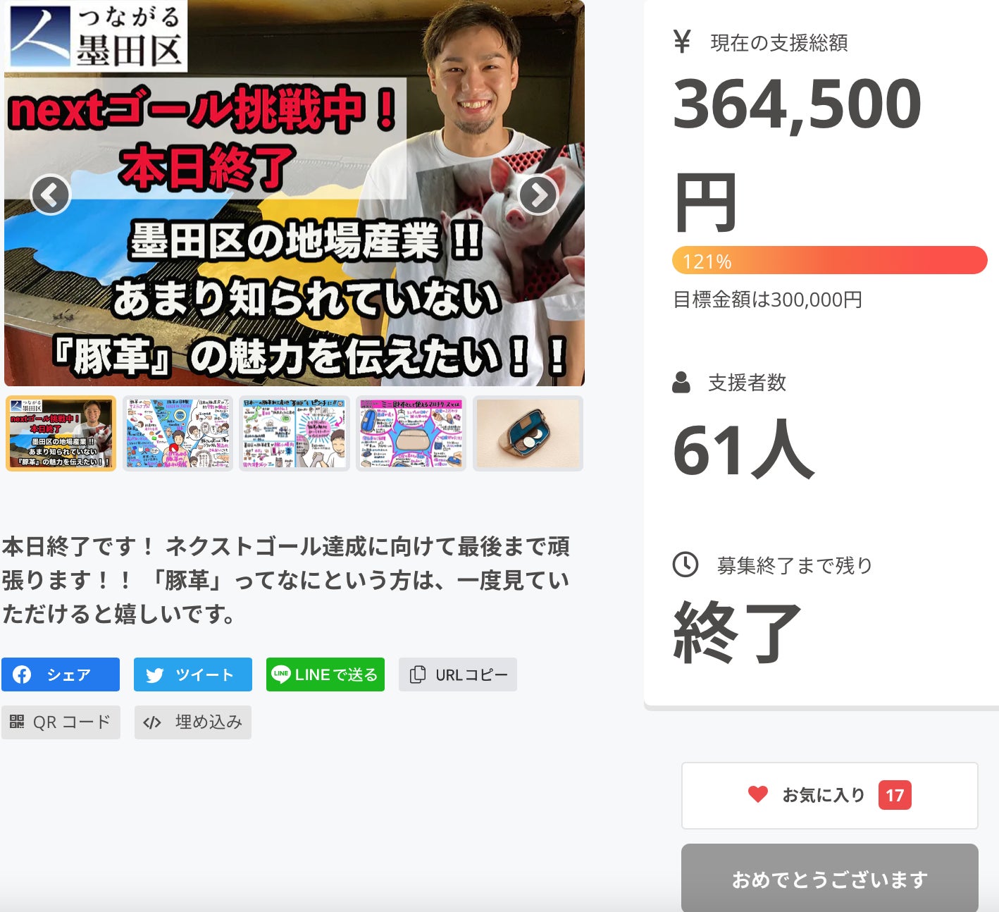 61人の方の支援、金額にして364,500円もの支援をいただくことができました!!