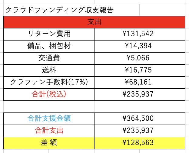 クラファン手数料を含む支出額が235,937円。