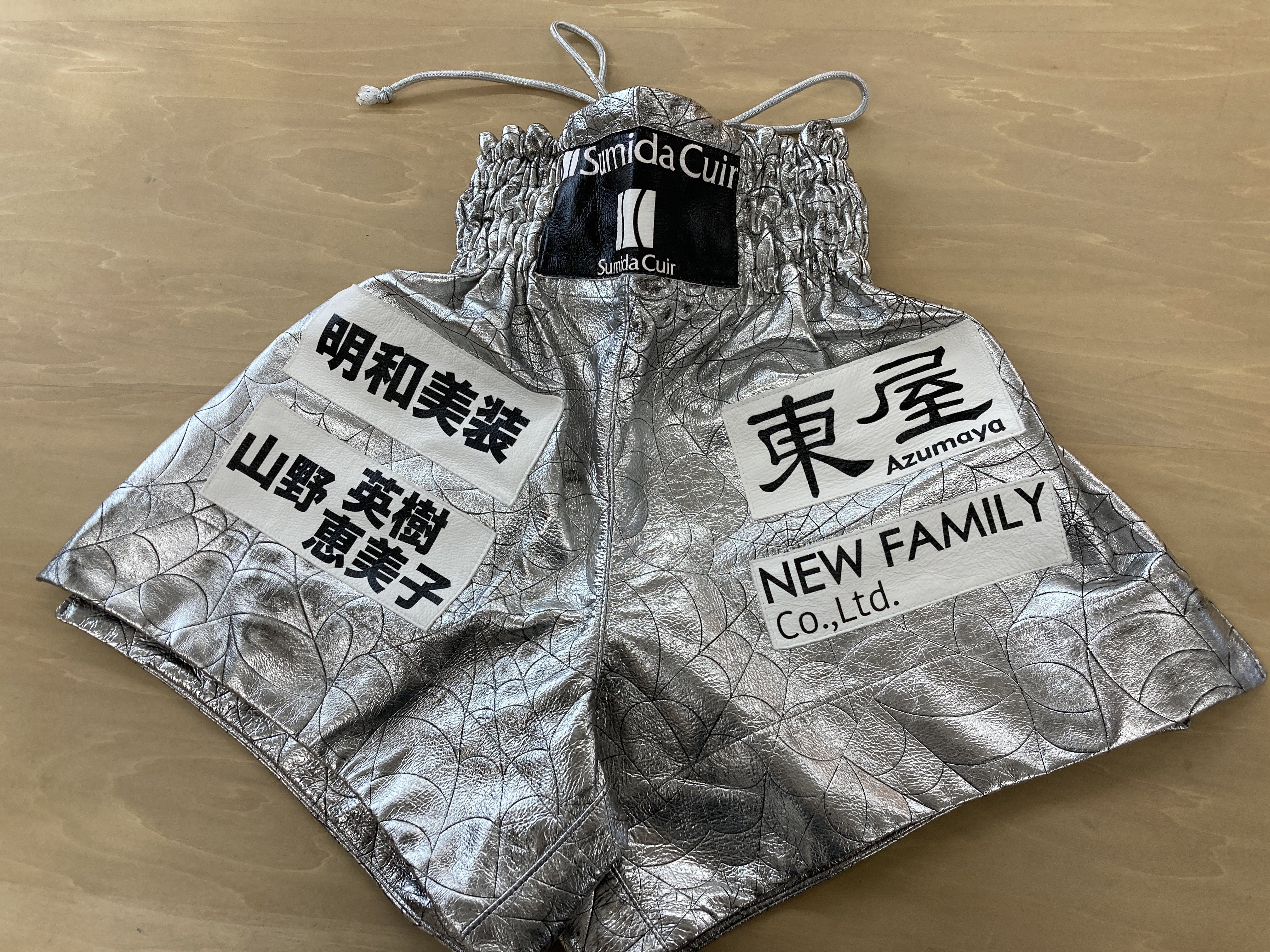 豚革でキックパンツを作ってくださった(株)ニューファミリーさん