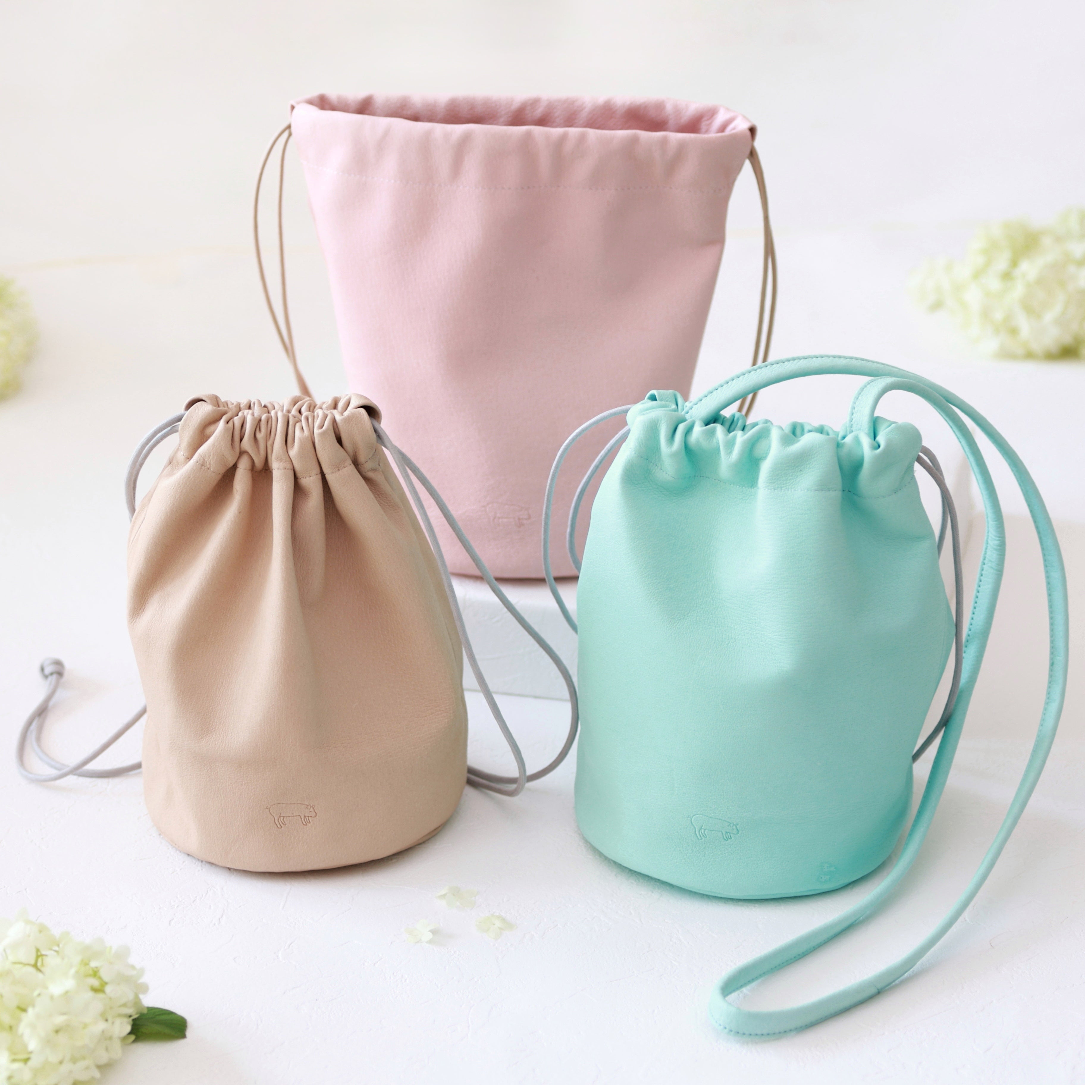 墨田区産ピッグレザー2Way巾着バッグ