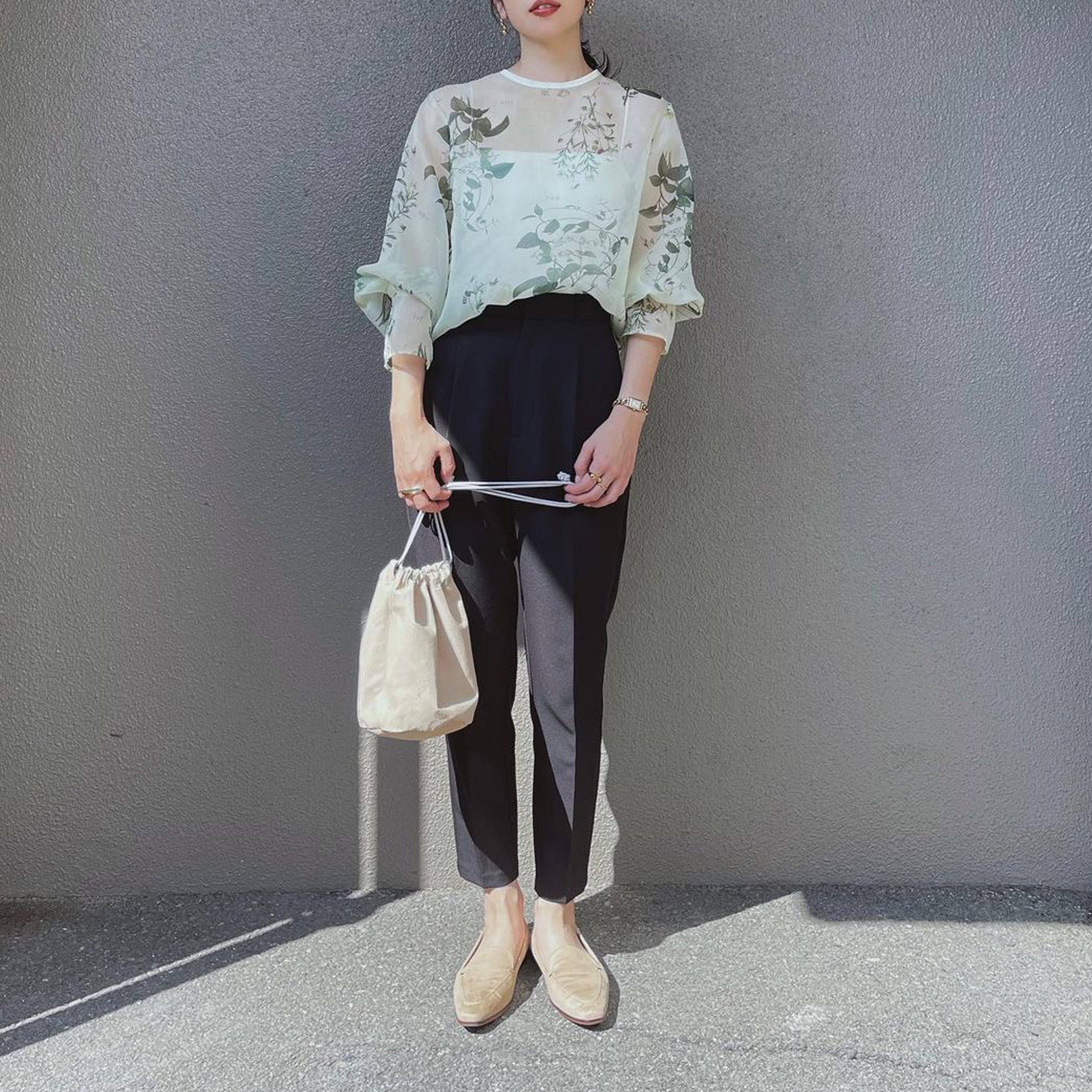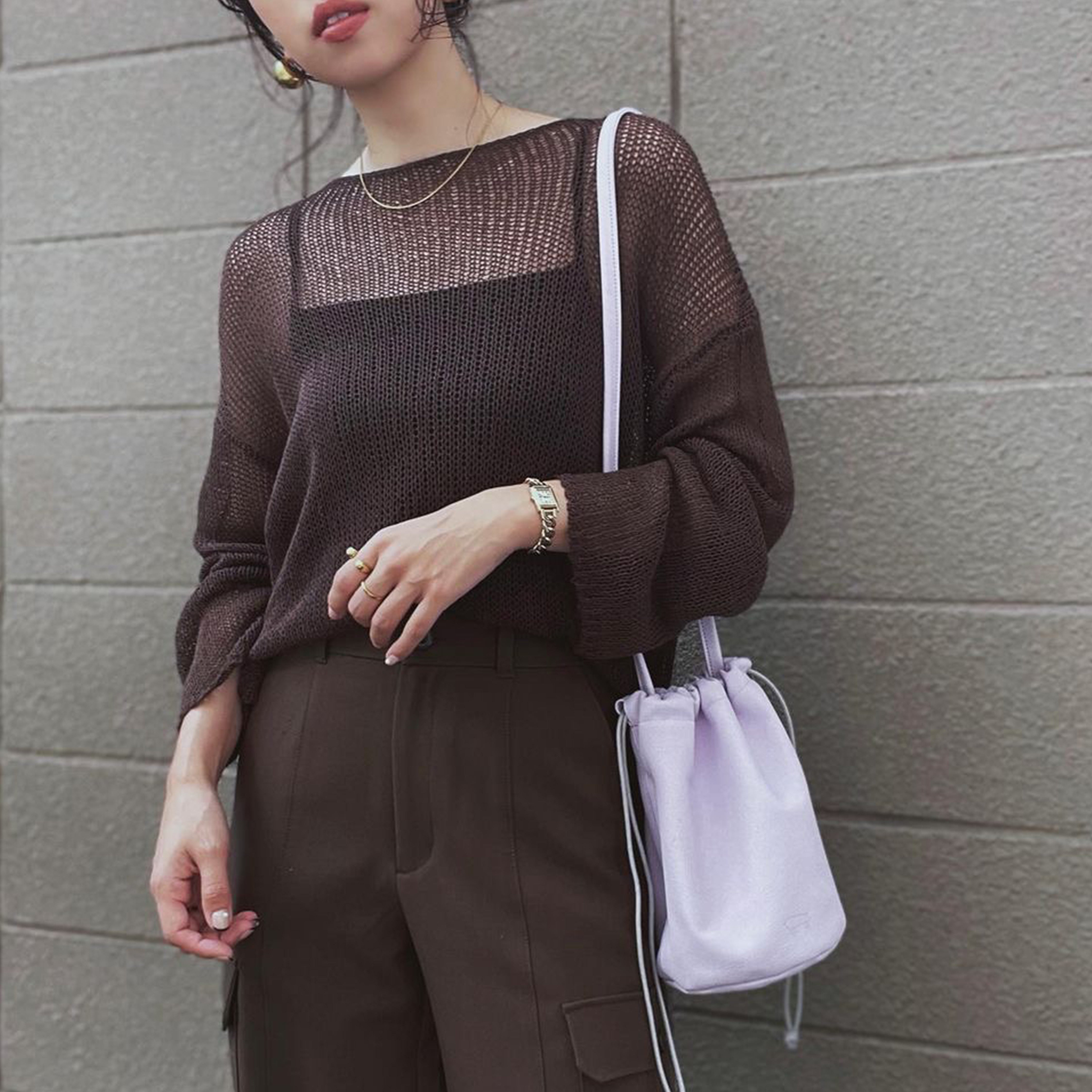 斜めがけや、短く結んで手にぶら下げてもバランスよくおさまります。