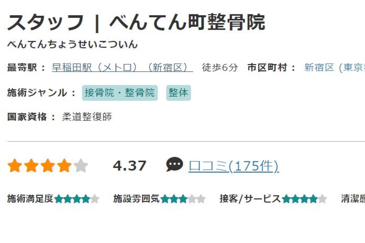 はじめまして!東京の新宿区で【べんてん町整骨院】を営んでおります田口翼と申します。当院は「必要以上の長期通院の必要がない整骨院」をモットーにしています。