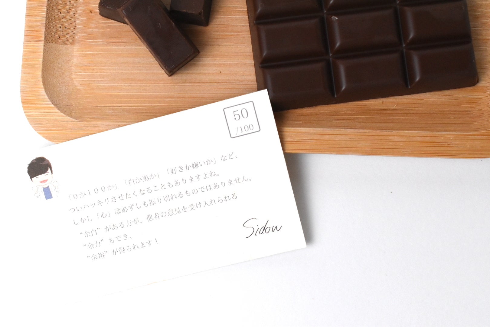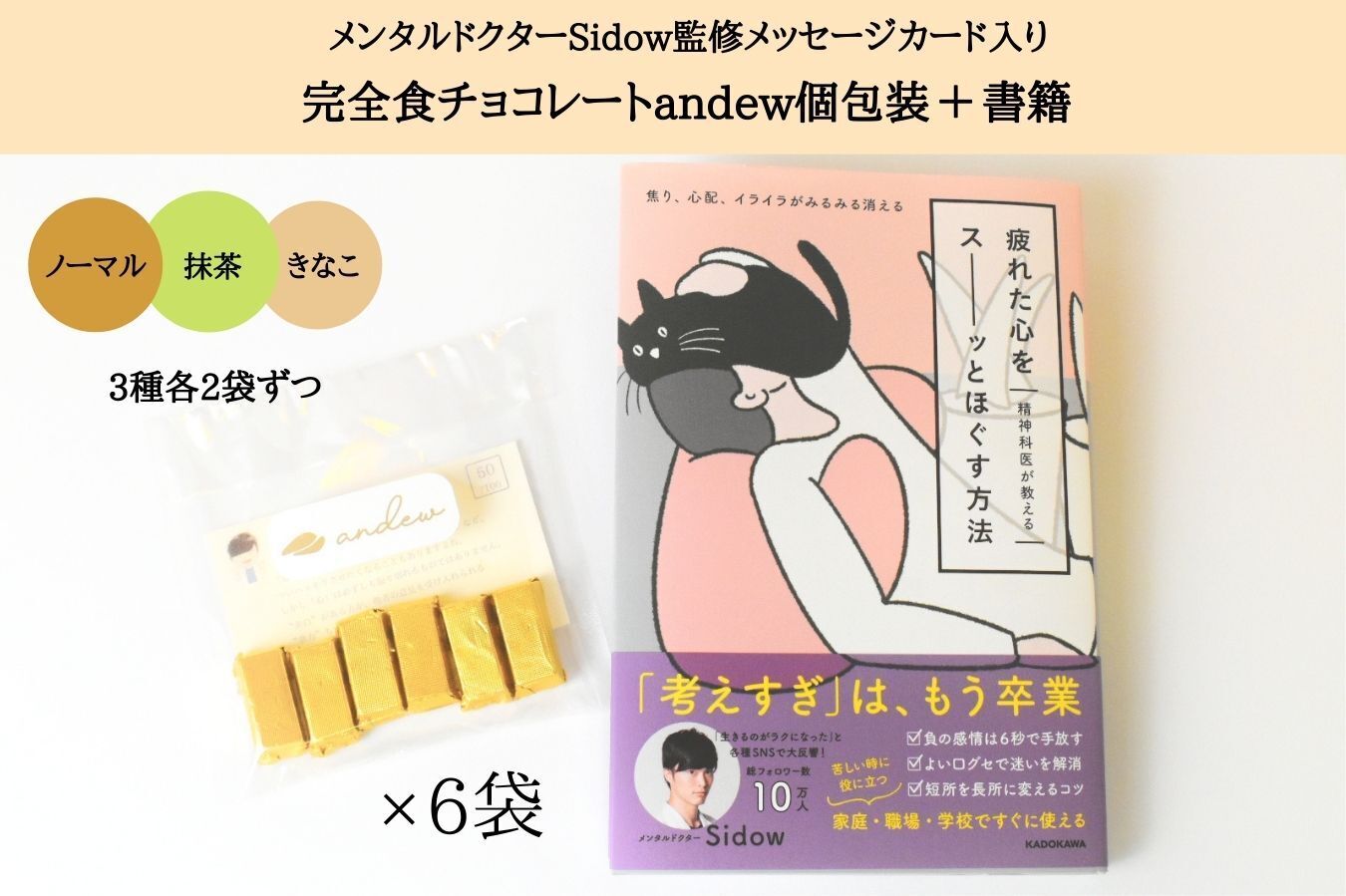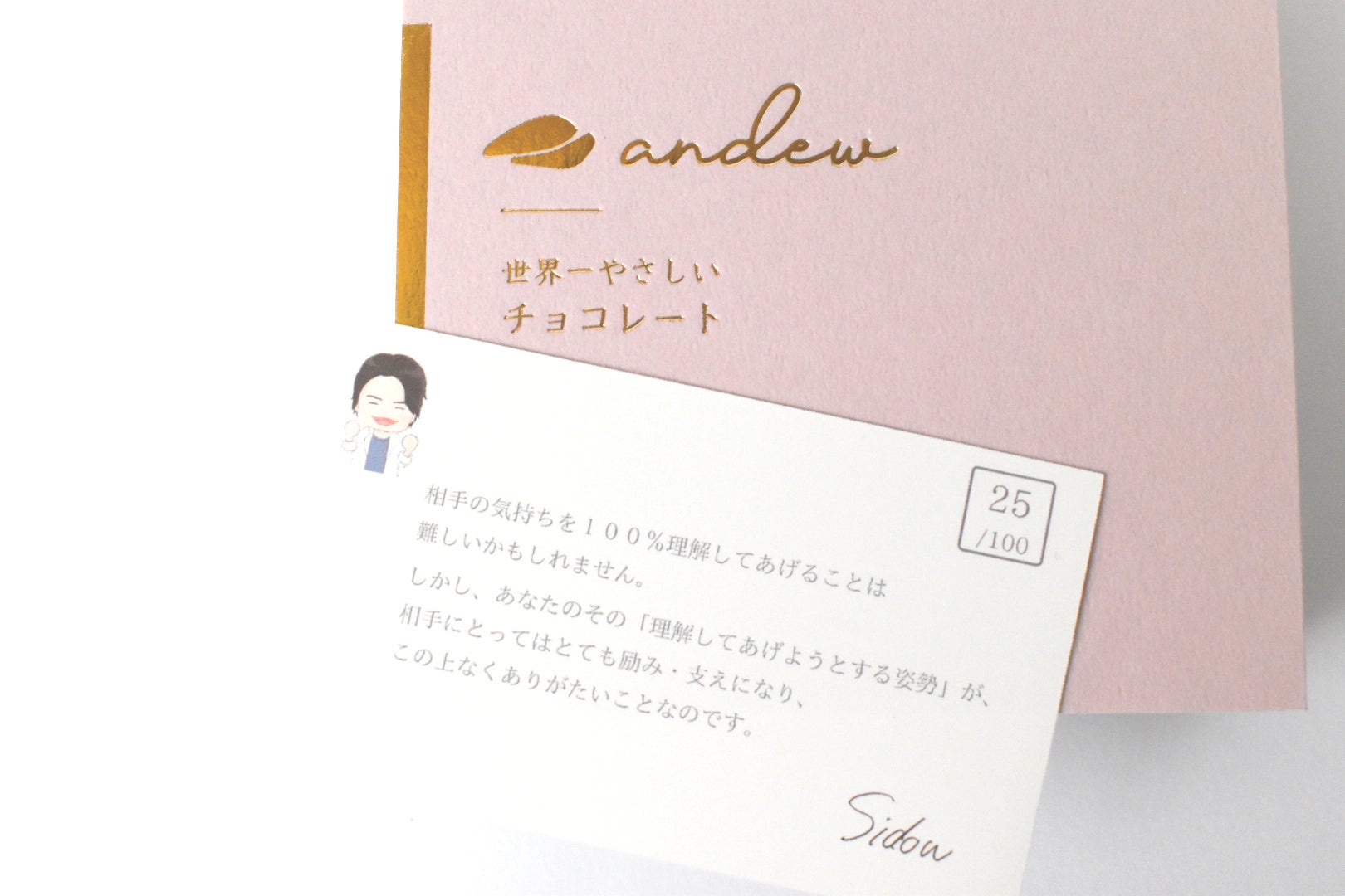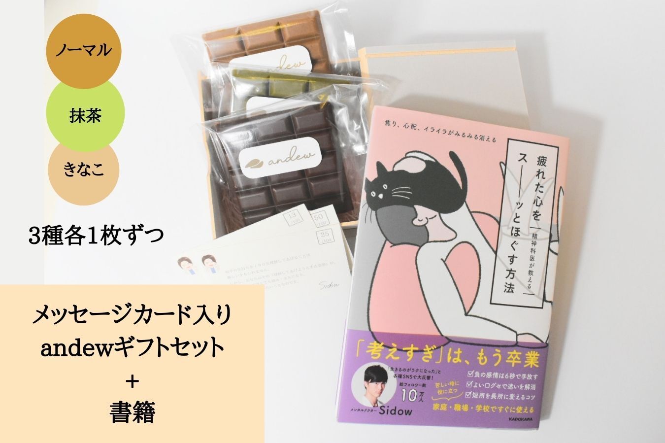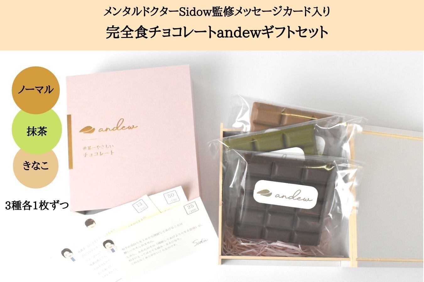 今回、メンタルドクターSidow監修のメッセージカードを完全食チョコレートandew(アンジュ)とともにお届け致します。