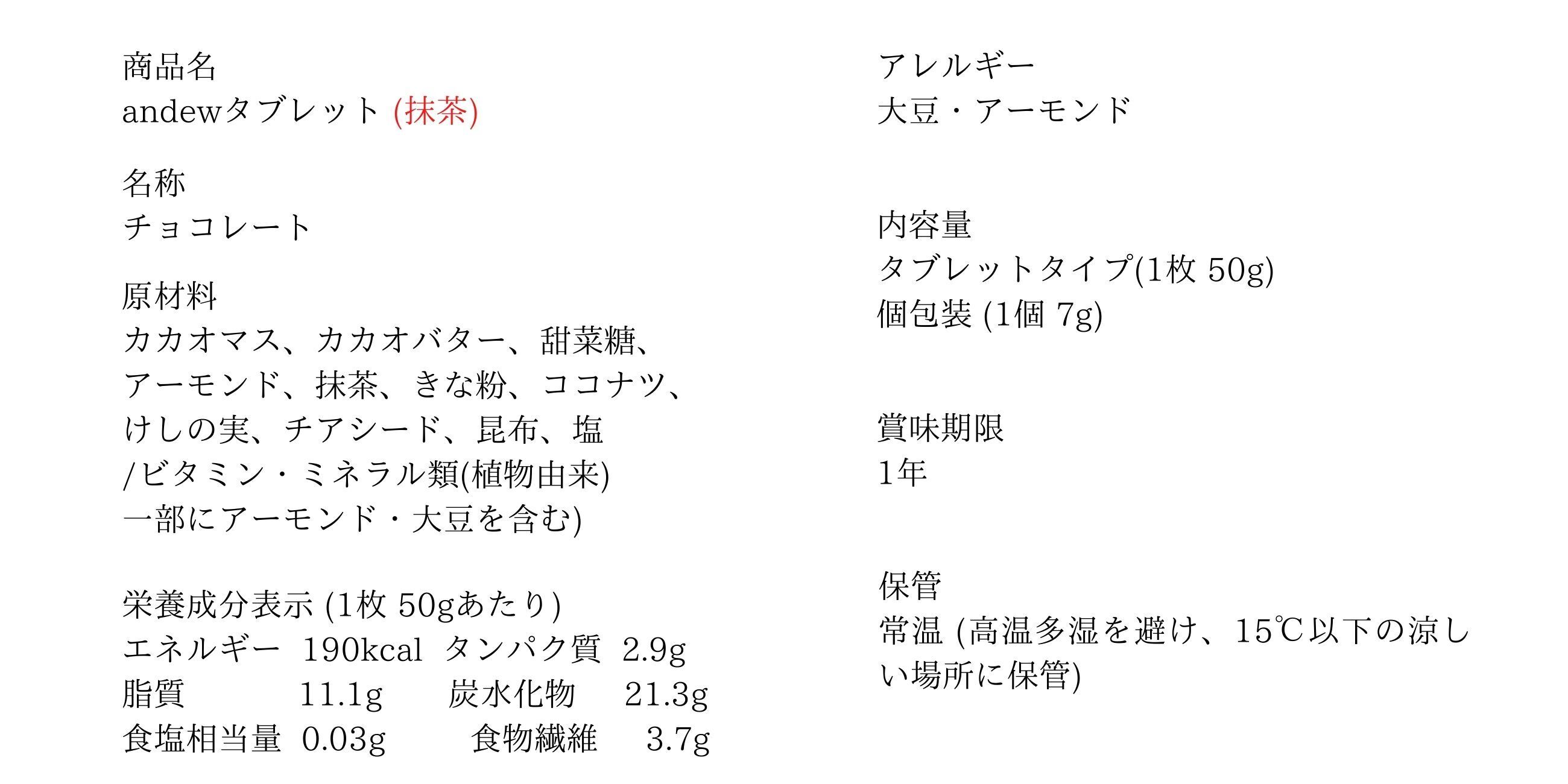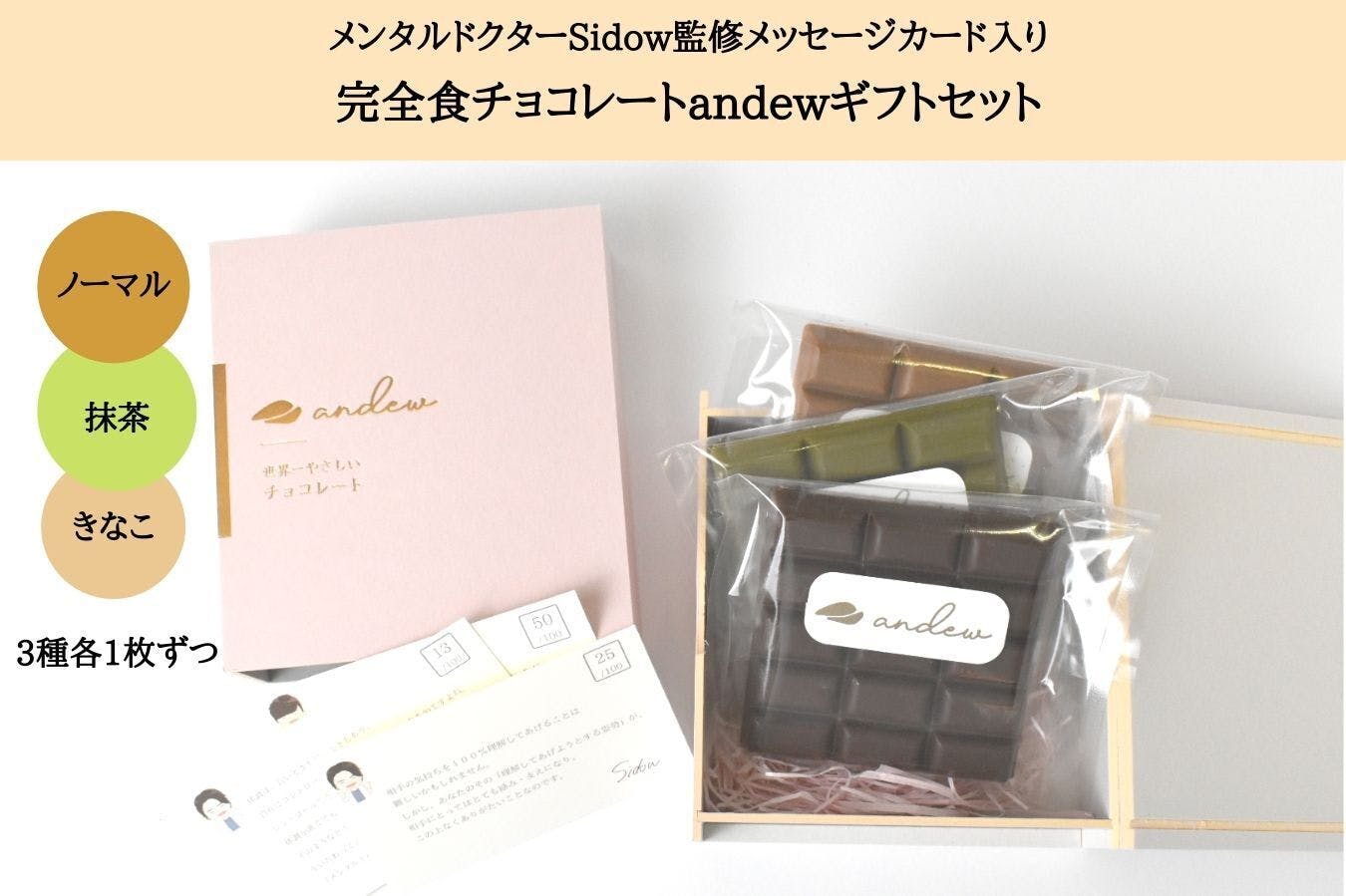完全食チョコレートandew(ノーマル・抹茶・きなこ)板チョコタイプ3枚入りギフトセット