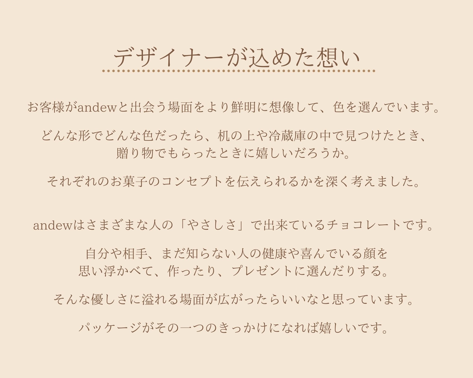 オリジナルギフトボックス入りのコースでは、andewのデザイナーが心を込めて、デザインしたギフトボックスに入れてチョコレートをお届けします!