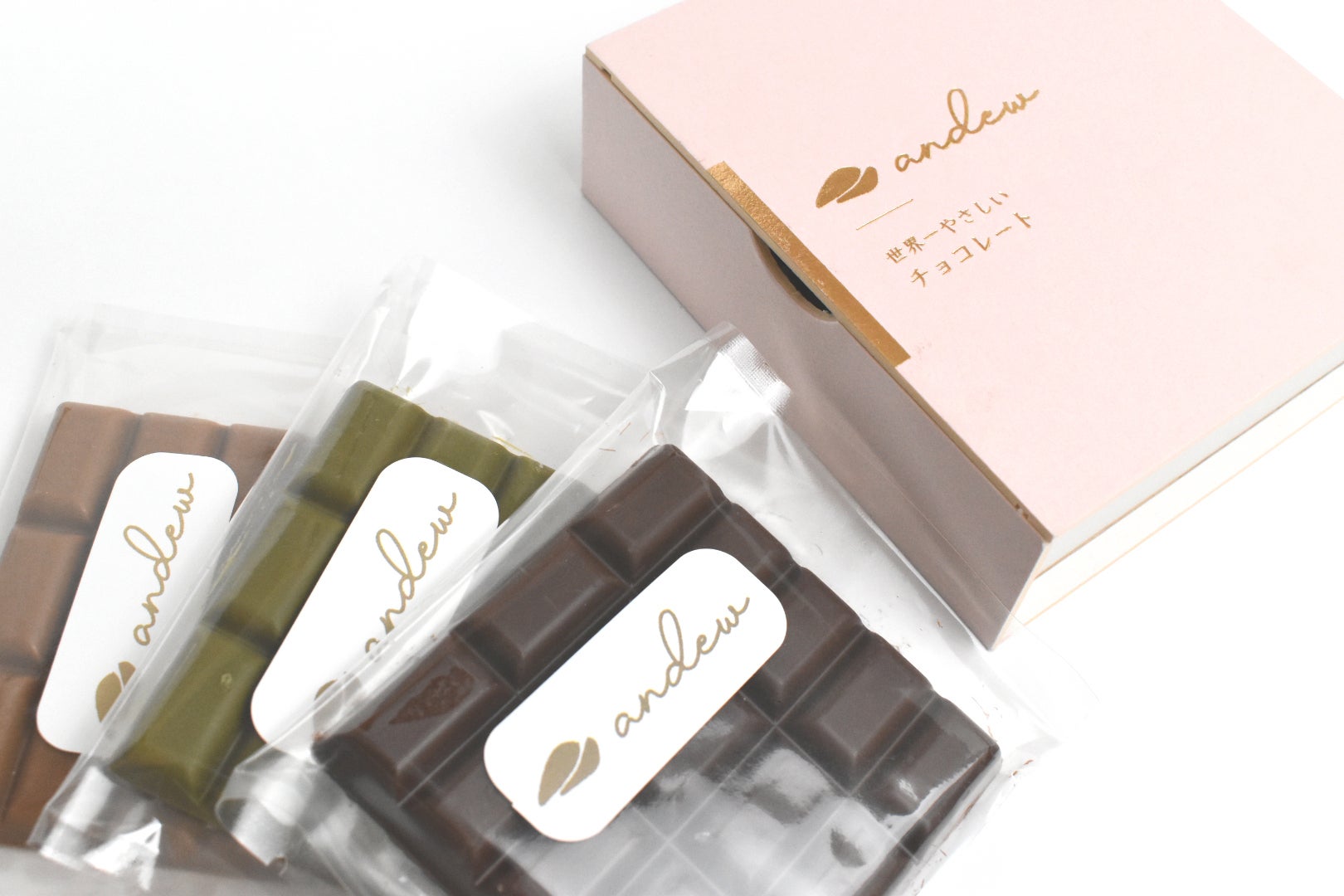 世界一やさしいチョコレートandew(ノーマル・抹茶・きなこ)の板チョコタイプ3枚入りギフトセット
