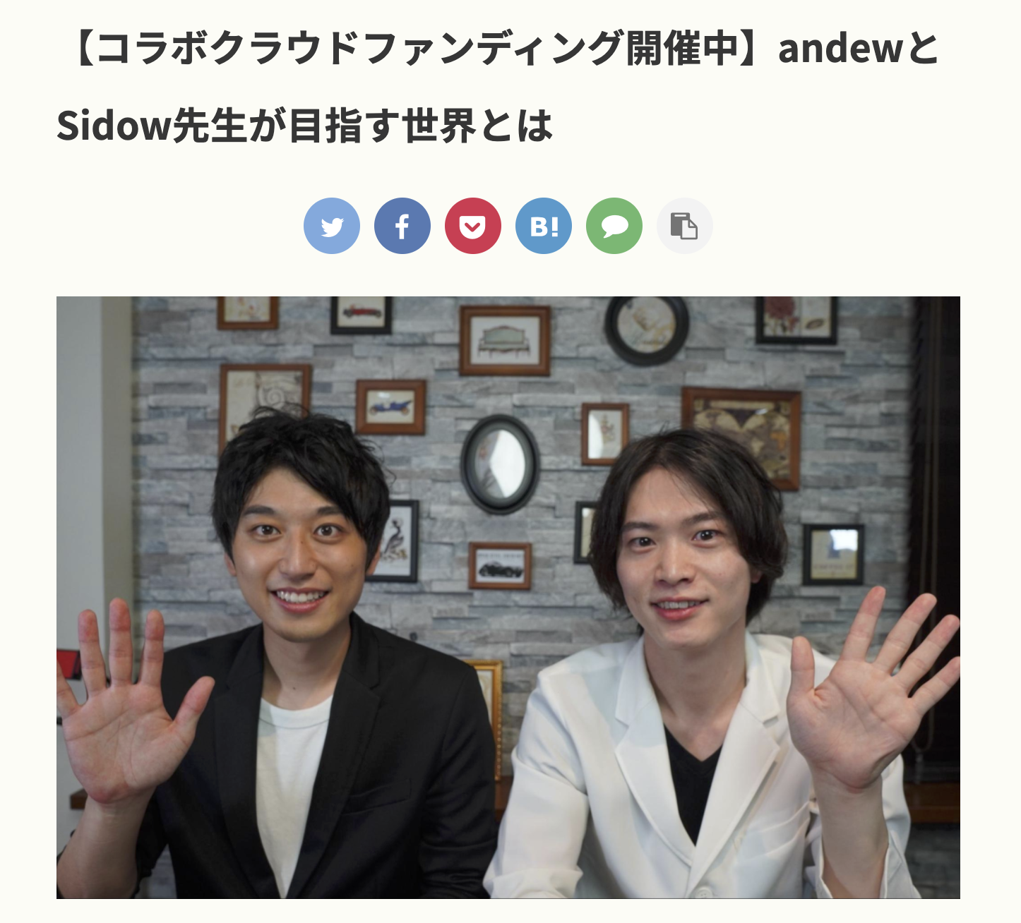 2021/11/14 18:00みなさんこんにちは!クラウドファンディング終了まで残り2週間となりました!本日メンタルドクターSidow先生との対談記事を公開させていただきました!メンタルドクターSidow先生ってどんな人?なぜ精神科医を目指したのか?リターンにもある新刊の本に込めた願いとは?先生の裏側に迫ります!↓対談記事はこちらから!http://media.andew.co.jp/2021/11/mental_dr_sidow/ もっと見る