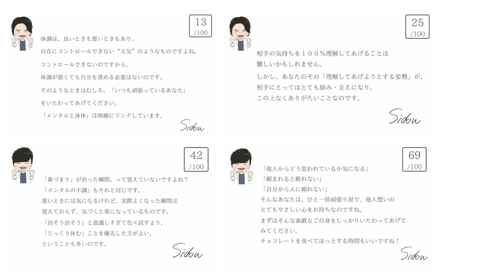 今回、すべてのメッセージカードは、精神科専門医Sidowの監修