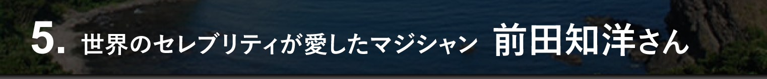 マジックの殿堂「マジックキャッスル」に日本人最年少で出演され、歴代の総理大臣や各国大使、天皇皇后両陛下をはじめ皇室の方々、そして海外のロイヤルファミリーにもマジックを披露されている前田さん。日本でも多くのTV番組にご出演され、ご覧になったことのある方も多いかもしれません。