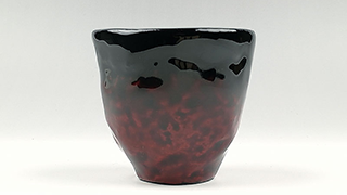 輪島塗 手びねり乾漆ぐい飲み: 輪島塗伝統工芸士、中門博さんの作品です。「刻芋」と呼ばれる木粉と糊漆を合わせた物と輪島で採れる地の粉を粘土質に合わせた物で練り上げて器の形を製作。口当たりは、ガラスでもなく陶器でもない魅力的で不思議な漆の世界に誘います。