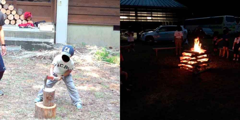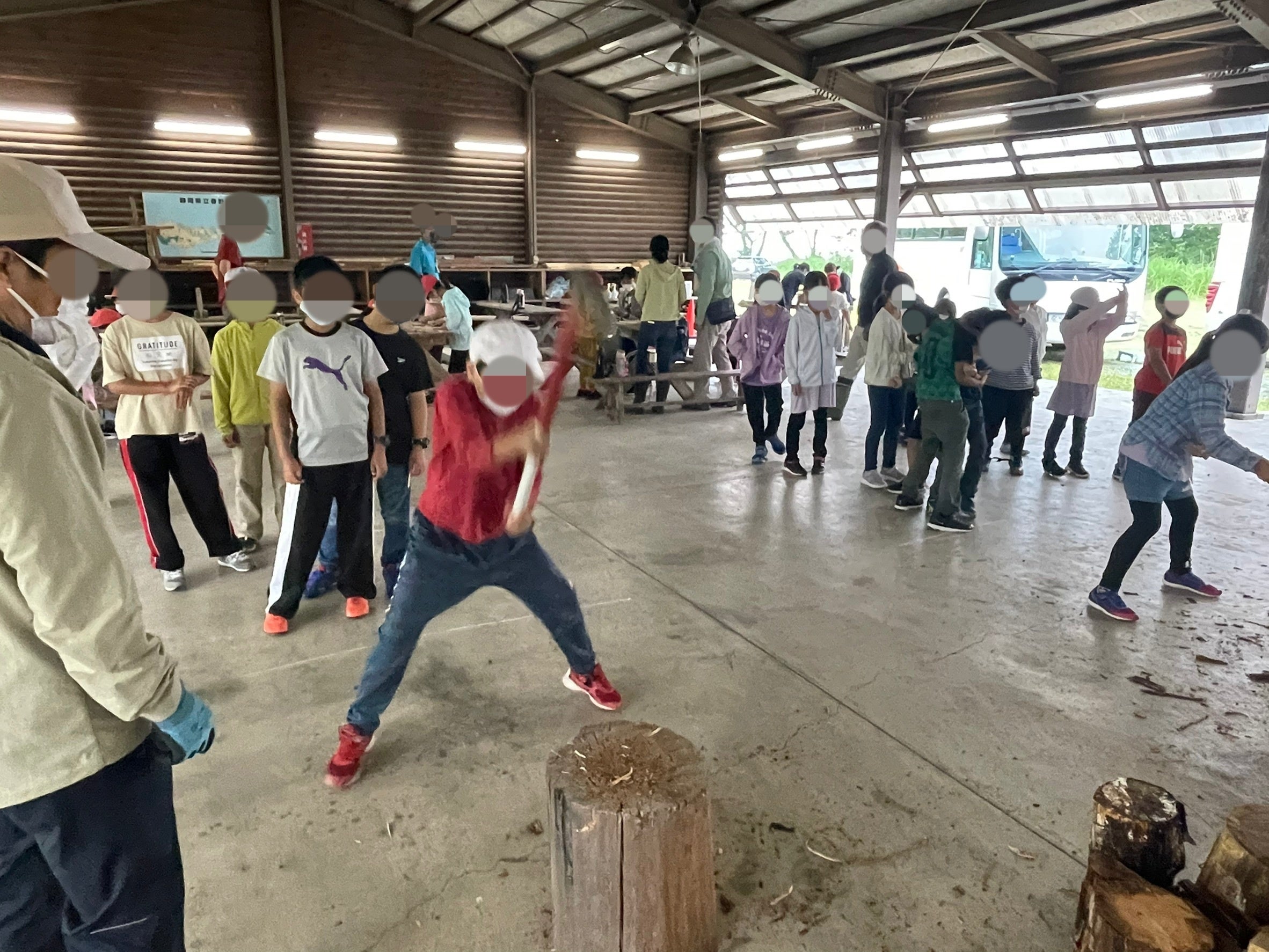 浜松市内の小学校が日帰りで薪割り体験をしました