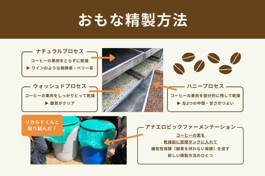 「コーヒーってどうやってつくられる?精製方法って何?」と思う方も多いはず。