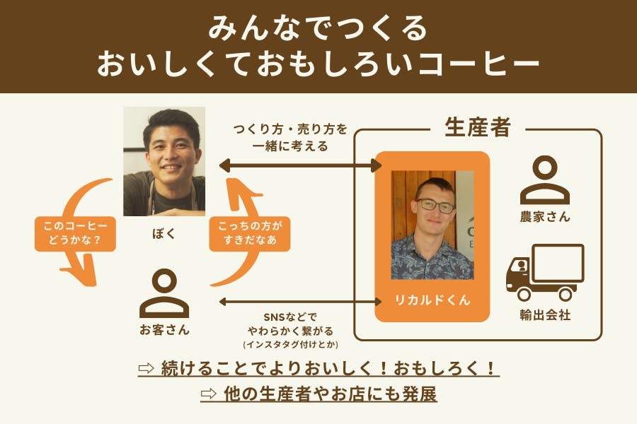 今年から始まるこのプロジェクトをより多くの人に知ってもらうことで、リカルド君のコーヒーを来年以降も買い付けて、もっとおいしく・おもしろいコーヒーになるよう目指していきます!