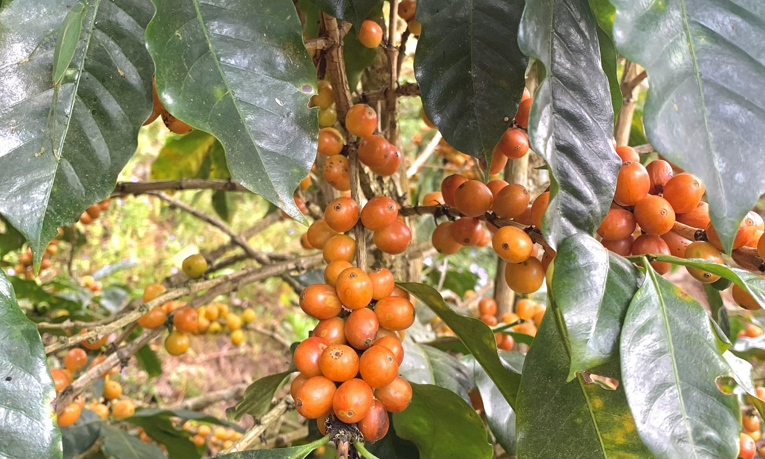 「少ないけど、珍しいオレンジ色のコーヒーチェリーがなっている。あと、運営を任され始めた農園で、今年から初収穫のコーヒーもある。」