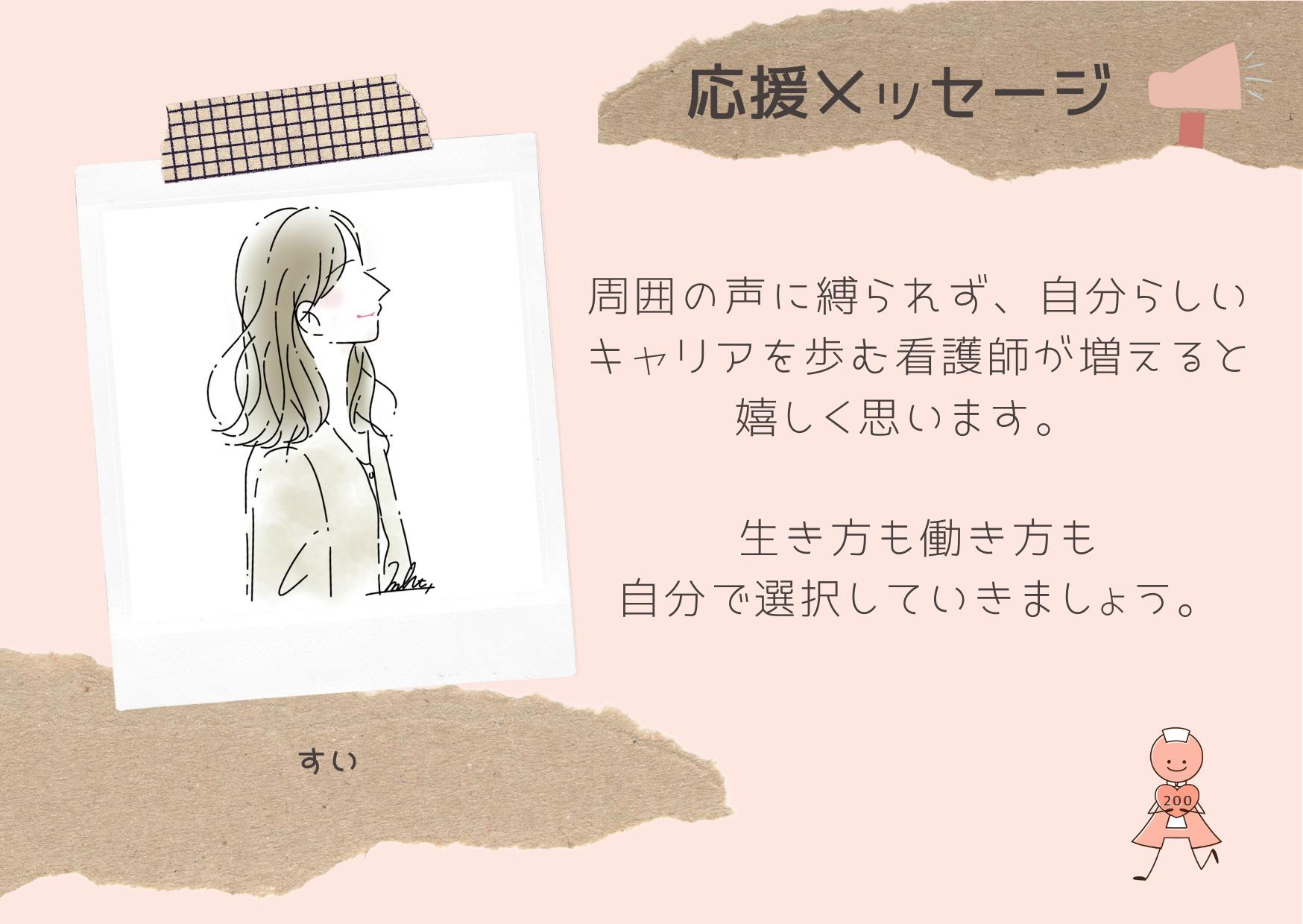 周囲の声に縛られず、自分らしいキャリアを歩む看護師が増えると嬉しく思います。