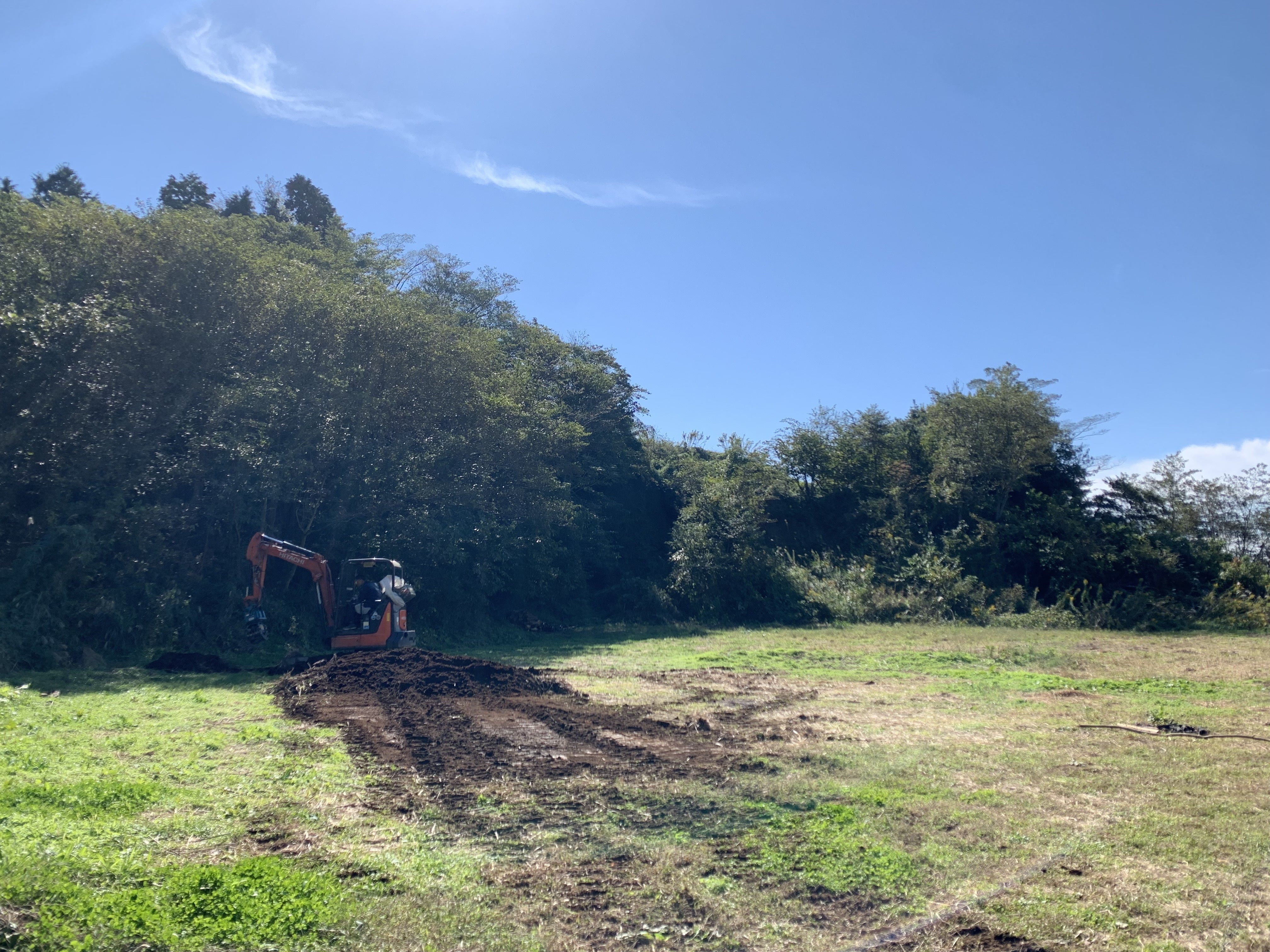 mujinaサイトも元々は畑だったものの、数年間作付けはされていなかったため地面に多少凸凹が有り、現在重機で地ならしをしている最中です。