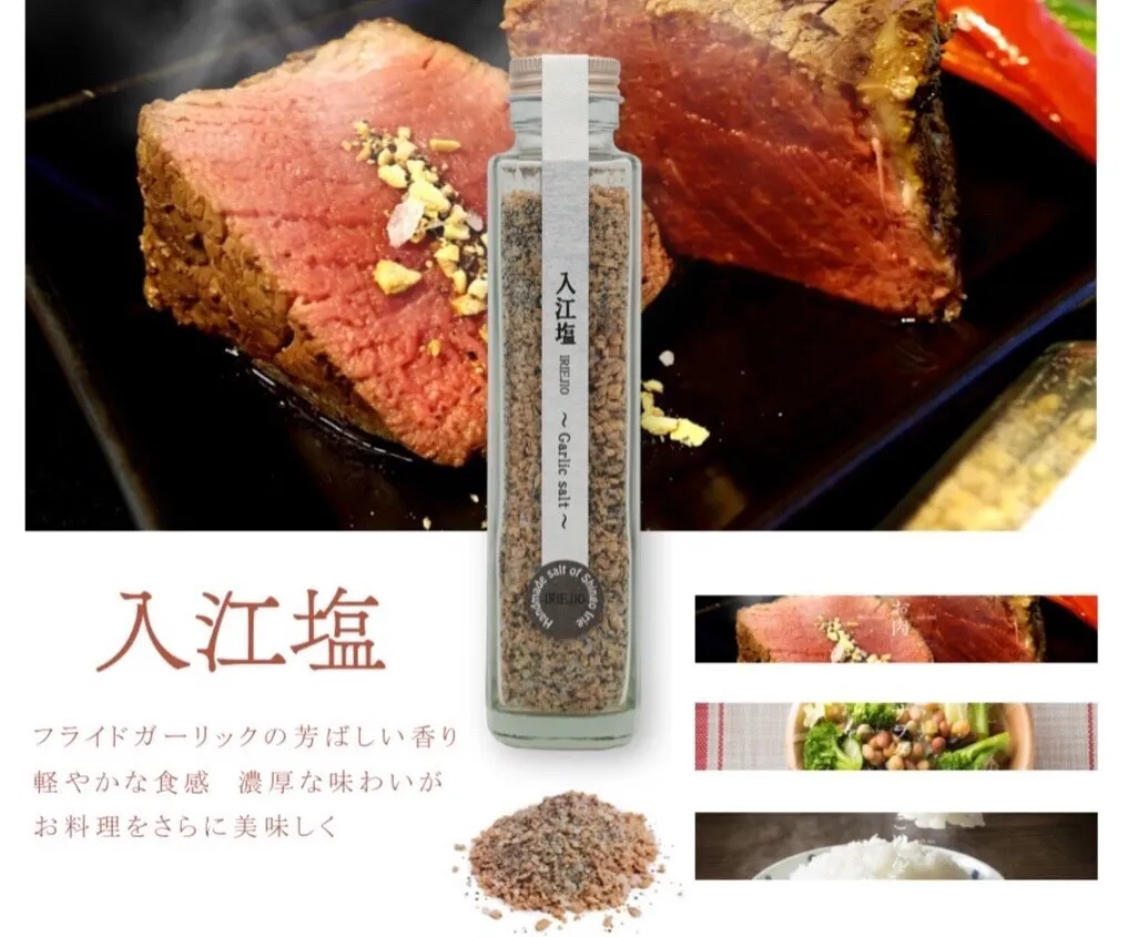 肉の入江でも、販売させていただいている『入江塩』ですが、リピートして頂く方も多く、ご自宅用・ギフト用としても、ご好評いただいております。