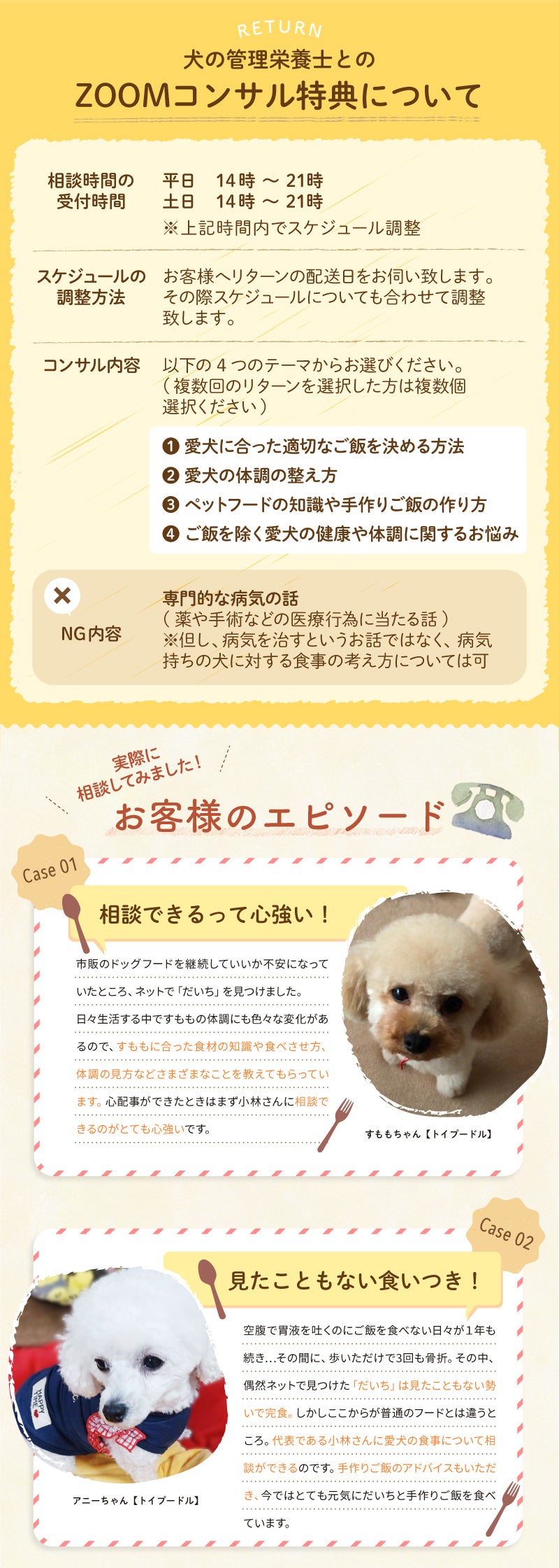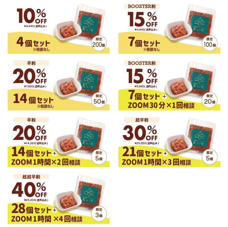 それでも解決できないという方に向けて今回「BOOSTER限定」でWEBオンラインコンサルを付け、「だいち」の愛犬へのおススメの食べ方をご提案します。