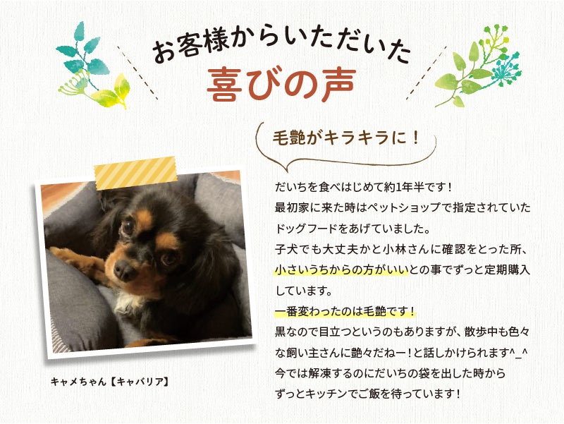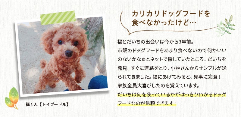 それでも解決できないという方に向けて今回「BOOSTER限定」でWEBオンラインコンサルを付け、「だいち」の愛犬へのおススメの食べ方をご提案します。