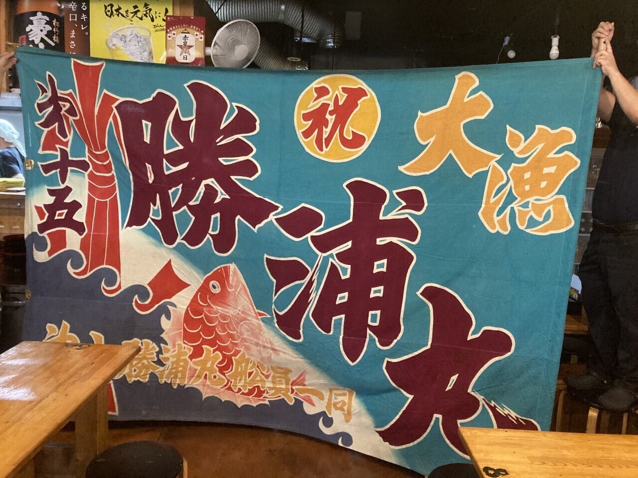大阪市北区中津で創業時に掲げていた”大漁旗”出してみました!