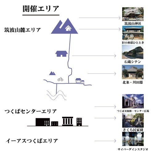 そして、観光のお客様でも普段はなかなか訪れない、しかし、魅力的な筑波山麓地域に光をあてます。つくば美術館を始め、サイバーダインスタジオ等新しい風が吹くつくばの中心部から、歴史ある筑波山神社から続くつくば道沿いの古民家等を繋ぎ、懐かしくも新しい文化を醸成する試みとなります。