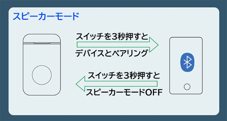 ■スイッチを押すだけで、ワイヤレスイヤホンからワイヤレススピーカーに早変わり