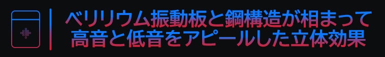 ベリリウムは、スピーカー振動板の中で最速の伝播速度を誇り、切れ味よくクリアに音場を再現する素材です。高硬度・高密度で加工が難しい物質のため、ハイエンド機器でしか採用されない、スピーカー振動板として優れた特性を持っています。