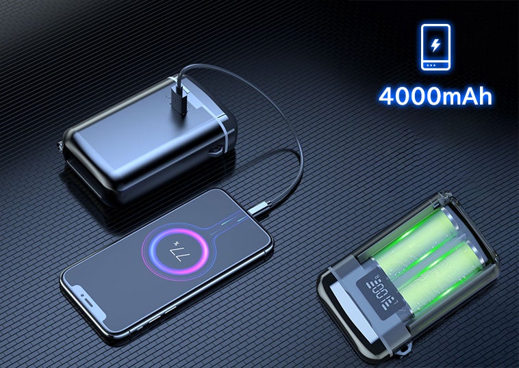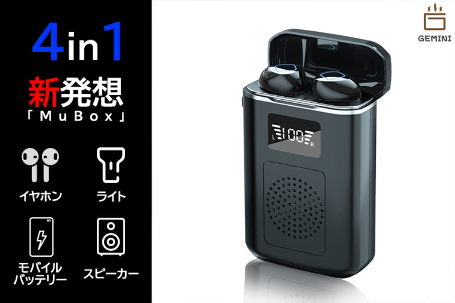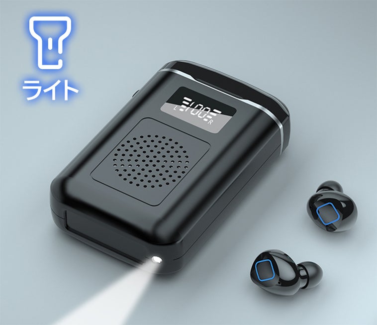 1台4役、ワイヤレスイヤホン、ワイヤレススピーカー、懐中電灯、モバイルバッテリー!