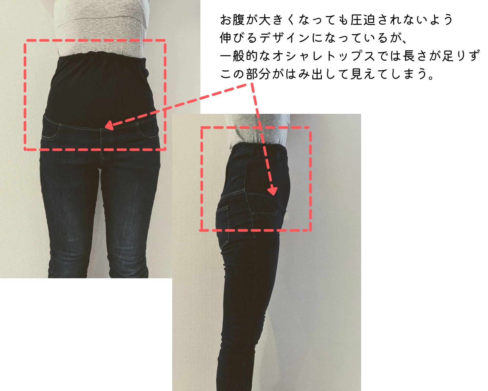 ①マタニティパンツのゴム部分が隠れる事