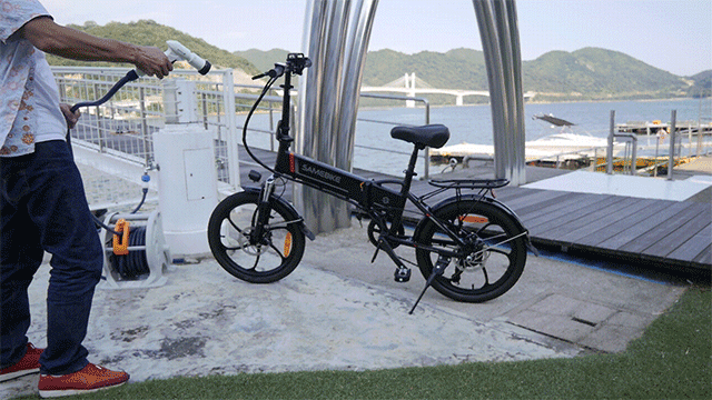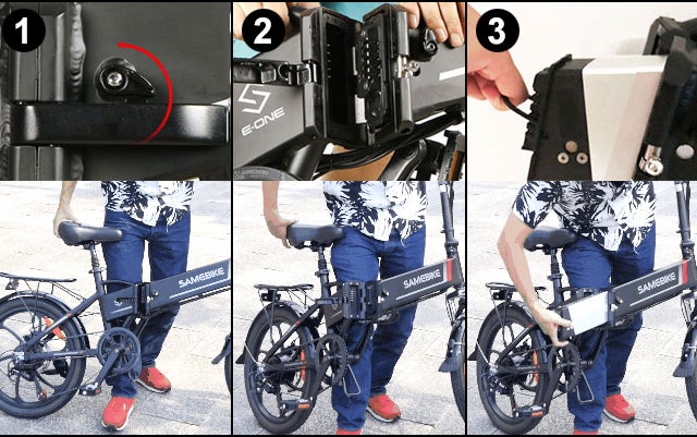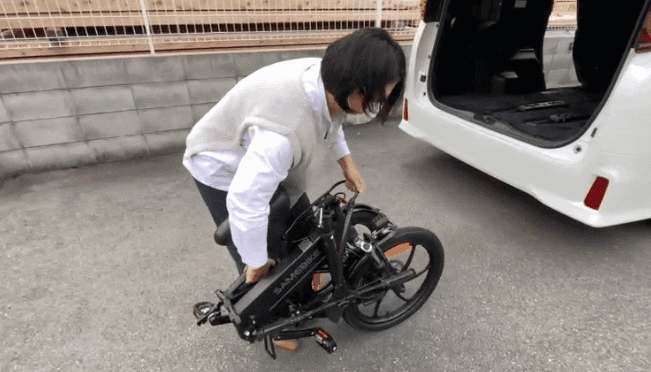 SAMEBIKEは、「ボディをたたむ」「ハンドルを立てる」「ハンドル・サドルの調整」の
