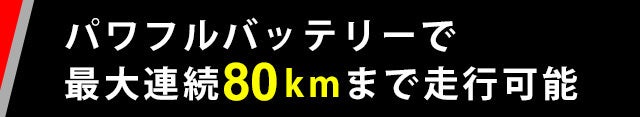 最大80km!パワフルバッテリーが連続長距離移動を可能に!