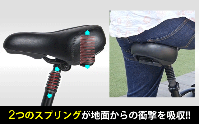 サドル内部と下部にスプリングを計算して配置した2段式スプリングを採用。