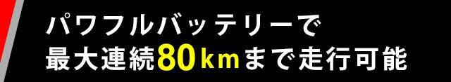 ②. パワフルバッテリーで最大連続80kmまで走行可能