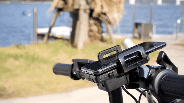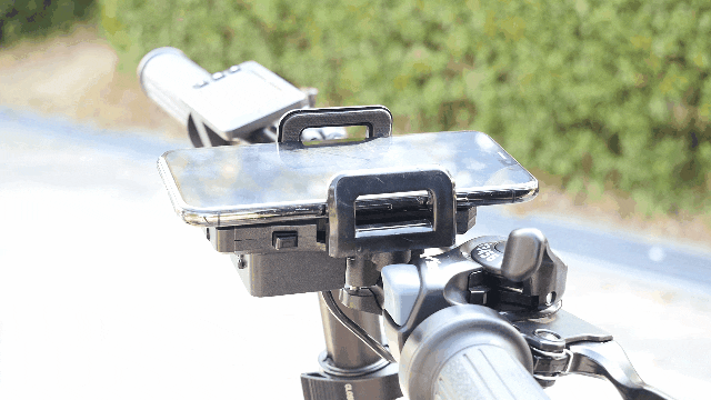 サイクリング中スマホをポケットやカバンから出さなくても地図やナビが使える便利なスマホホルダーを標準装備!