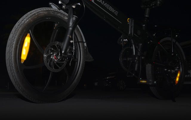 走行中は光るホイル反射板がタイヤの回転とともに動いているので、暗い夜道でもはっきりと目立ち、車を運転中の方にもしっかり目に届き、より安全性が高まります。