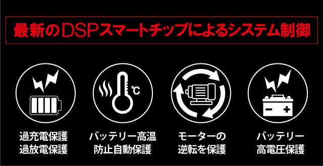 モーター・バッテリー・制御コンピューターは1年間部品代を補償させて頂きます。