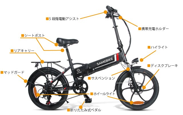 自転車レースにも出場したほどの実力を備え、海外で絶大な人気を誇る電動アシスト自転車「SAMEBIKE」を日本仕様に改良し、他にはない便利な機能を搭載させたNEWモデル!