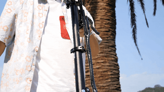 折りたたまれたボディを開き前輪と後輪の間のクリップをロック