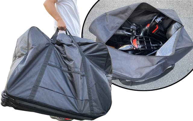 バッグを全開にして 自転車を乗せてジッパーを閉じるだけのラクラク収納。